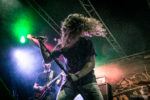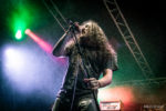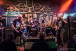 In jeder Hinsicht besser machen es die Franzosen DISFUNERAL: Die zelebrieren ihren Death Metal wesentlich engagierter und haben einen ziemlich aktiven Frontmann mittig platziert. Der schüttelt schon mal seine Matte, grunzt, schreit und keift (und ist vor allem zu hören). Klar, der “Archaic Death Metal”, den die Band aus Nancy propagiert, erfindet das Rad nicht neu und ist auch nicht so grobschlächtig, wie es der Name suggeriert – immerhin darf der Gitarrist auch Soli spielen. Aber das Quartett, das erst vor Kurzem seine selbstbetitelte Debüt-EP veröffentlicht hat, legt eine grundsolide Leistung ab. Und es darf sich – nicht zuletzt beflügelt durch die deutliche Leistungssteigerung zum Opener – über offensiven Applaus freuen. Einzige Trübung der Freude: Um den Zeitverzug auszugleichen, wird ab sofort bei jeder Band Spielzeit abgezwackt. Geholfen hat es fast … aber dazu später. (EM)