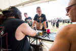 Die gelbe Sau präsentiert sich gnadenlos, sodass eine Erfrischung mehr als gelegen kommt. Musikalisch passiert dies in Form der Irish-Folk-Punker von FIRKIN, für den Körper durch einen großen Wasserschlauch, mit dem die Securities den ersten Reihen eine kalte Dusche verpassen (der durch die Reihen streunende Eisverkäufer macht zudem auch das Geschäft seines Lebens). Wilder Tanz im Wasserstrahl ist angesagt und die Songs der aus Ungarn stammenden Band bieten reichlich Anlass dazu. Sänger Andor Kovács-Nemes hat sich vorsorglich auch schon mal in ein weißes Hemd geworfen und überzeugt mit so manch deutscher Ansage. Mit dem „Drunken Sailor Song“ ist dann auch der perfekte Partysong mit im Gepäck, weshalb das Rockharz – angetrieben von Querflöte und Geige – ausgelassen feiert. Trotz der Hitze klappt die Interaktion zwischen Band und Publikum, beispielsweise angetrieben durch ein kurzes „We Will Rock You“-Intermezzo, bemerkenswert. Respekt für solch Leistung bei dieser Hitze.