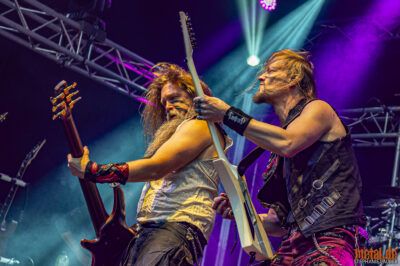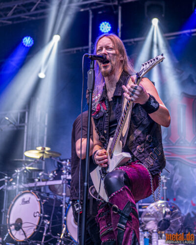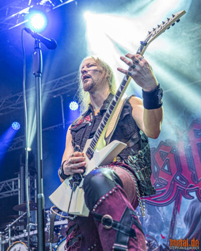Der Kompositionsprozess läuft bei uns dauerhaft. Wenn wir genug Songs haben, dann machen wir ein Album und im Moment arbeiten wir sogar schon am nächsten Album. „Two Paths“ ist ein gutes Beispiel dafür, es gibt einen Song namens “ I Will Never Kneel“, die erste Demo dazu ist schon sieben Jahre alt. Wir haben die bis jetzt nicht fertig gemacht, weil uns immer noch was gefehlt hat. Dann gibt es noch den Song „King Of Storms“, der ist auch schon vom letzten Sommer, den haben wir nach einem Festival in Spanien backstage geschrieben. Es kommt immer so sehr auf den Song an, ich kann nicht immer genau den Tag sagen, aber es ist einfach ein konstanter Prozess.