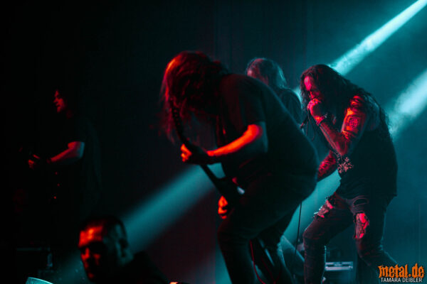 Doch langsam kommt Stimmung auf und spätestens als die ersten Töne von „Seed of Death“ erklingen, sehen die Musikerinnen von NERVOSA endlich eine halbwegs gefüllte Halle vor sich. Live wesentlich thrashiger als aus der Konserve spielen die vier Brasilianerinnen ihr Set tadellos, aber leider auch etwas lieblos herunter. Man spürt, dass die „Nihility Tour“ zusammen mit INCANTATION und DECAPITATED an diesem Abend in Oberndorf nach fast einem Monat zu Ende geht, denn der der Funke will irgendwie nicht mehr so ganz überspringen, was insbesondere bei INCANTATION ein wenig die Reihen lichtet.