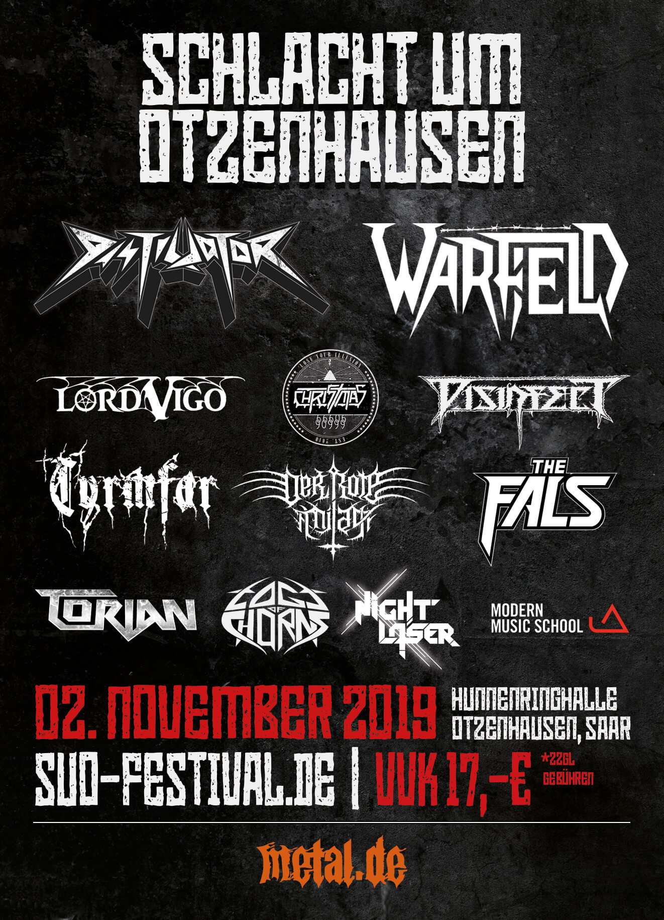 Das Saarland soll beben: Erneut wird zur SCHLACHT UM OTZENHAUSEN gerufen, wenn am 2.11.19 Bands wie DISTILLATOR und WARFIELD die Gitarren verkabeln.