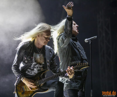 Rein inhaltlich gibt es jedenfalls nichts zu meckern. Granaten wie „Judgement Day“, „747 (Strangers In The Night)“, „Wheels Of Steel“, „Heavy Metal Thunder“, „Strong Arm Of The Law“, „Dallas 1 PM“, Denim And Leather“, „Princess Of The Night“, „Power And The Glory“, „The Eagle Has Landed“ oder „Bad Boys (Live To Rock N‘ Roll)“ sorgen für eine gute Stimmung und zeigen, warum SAXON auch heute noch auf eine große Fanbasis zurückgreifen können. Zu der Zeit, als die Stücke entstanden, waren SAXON, wie erwähnt, auf ihrer kommerziellen Hochphase. Platin- und Goldauszeichnungen, Auftritte bei Top Of The Pops waren an der Tagesordnung für Biff Byford und seine Mannen, selbst in den U.S.A. wurde der Markt geknackt.