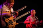 In der (fast) klassischen Besetzung Doppel-Gitarre, Bass und Schießbude hauen sie uns einen sehr jazzigen Sound um die Ohren, ein meist treibender, recht komplexer Rhythmus lässt das Publikum gespannt zuhören, welches sich zu sehr wohlwollendem Mitnicken hinreißen lässt. Schon zu Beginn überrascht Gabriel Marin mit sehr nach klassischer Jazztrompete klingenden Sounds, die er der oberen Hälfte seiner Doppel-Gitarre mit entsprechendem Modeler entlockt. Aber auch auf der unteren Hälfte kann er mit meist cleanem Sound und seiner hervorragenden Spieltechnik beeindrucken. Auch das in den jazztypisch langen Titeln unvermeidliche Saxophon-Solo, unterlegt mit Drum&Bass-Rhythmen, klingt sehr überzeugend und wird mit viel Applaus und Jubel belohnt. Zwischen den Titeln leidet der Kontakt zum Publikum etwas an den sehr spärlich gesäten Ansagen, erst die Musik knüpft dann wieder dieses Band.