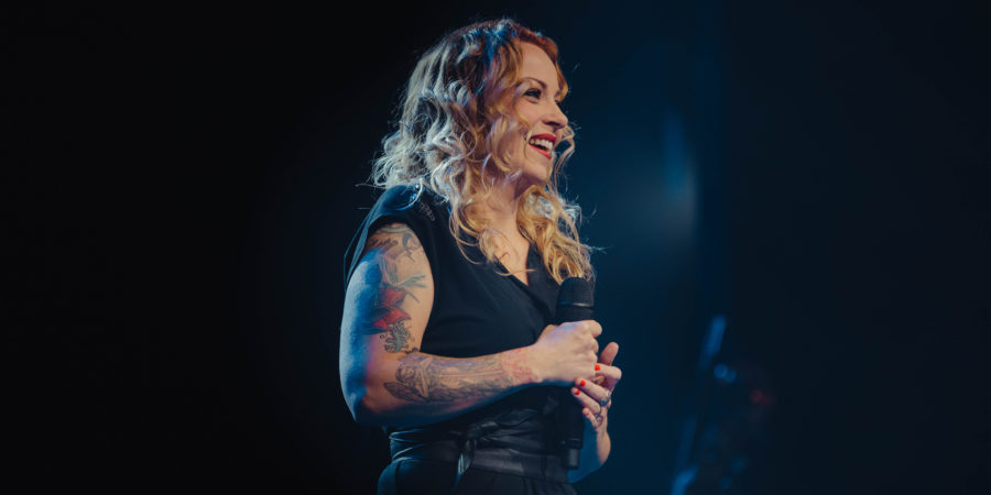 Genau. Wir haben über die Setlist gesprochen. Nächstes Jahr habe ich mein 25-jähriges Jubiläum als professionelle Musikerin. Ich dachte daher an eine Show, die einer Anthologie gleich alle Phasen abdeckt. Dann kam aber noch ein weiteres Venue (Poppodium 013, Tilburg, Anm. d. Autors) auf uns zu und wollte uns ebenfalls buchen, und so sind aus der einen Show zwei Shows geworden. Beide Shows waren annähernd ausgebucht, und dadurch waren wir alle natürlich ziemlich aufgeregt. Dann kam erst die Idee auf, das alles aufzunehmen und daraus eine Albumveröffentlichung zu machen. Jeder Schritt auf diesem Weg war also ziemlich spontan, und jetzt haben wir ein Livealbum vorliegen. Das ist toll! Das war ja so gar nicht geplant.