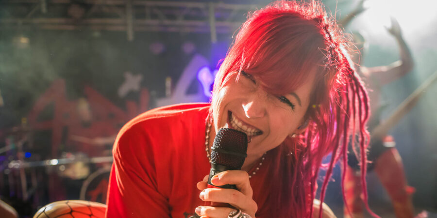 Lisa-Marie: Ja, absolut.. Das ist auch noch ein Überbleibsel aus Corona-Zeit. Die Farbe Rot hat uns irgendwie gefunden. Ich hatte zwar schon rote Haare, aber das mit den Klamotten kam auf Initiative von ALARMSTUFE ROT, mit denen wir einen Song gemacht haben, der „Break The Silence“ heißt.