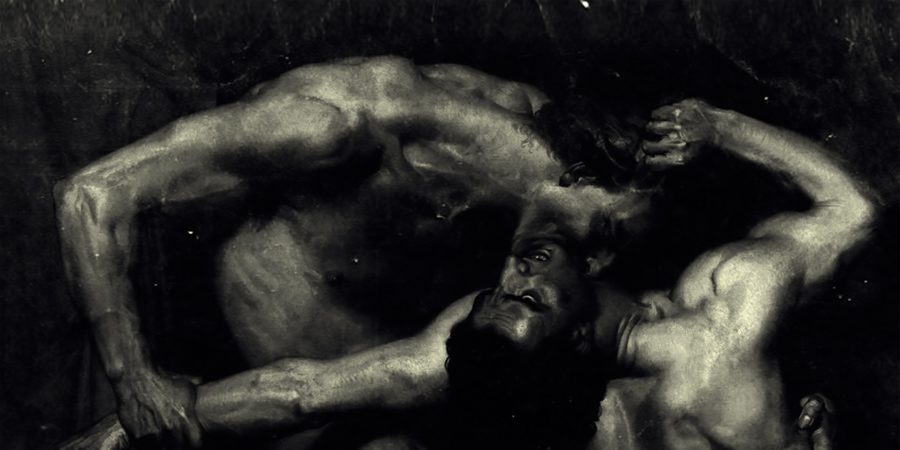 Es handelt sich um einen Ausschnitt des Gemäldes „Dante und Vergil in der Hölle“ von William Bourguereau. Im Original zu sehen ist eine Szene aus der „Göttlichen Komödie“, in der Dante und Vergil zwei kämpfende Männern sehen. Das zentrale Bild fängt die Stimmung unseres Albums ein. Es ist ein starkes Bild und wirkt geradezu ikonisch, wie ein ewiger Kampf. Vielleicht ist „Kampf“ aber zu viel gesagt, der eine wird vom anderen geradezu vernichtet. Wir leben eben in einer Welt, in der wir uns gegenseitig vernichten. Das hat einfach gepasst. Wir haben das Bild dann natürlich entsprechend eingefärbt, oder besser: entfärbt.