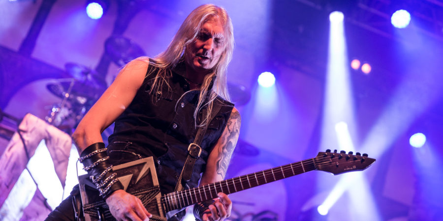 Es scheinen ja immer noch Träume vom ach so glamourösen Leben auf Tour und den wilden Partys im Backstage zu existieren. In den Backstage der MHP Arena geht es aber erst mal an draußen rauchenden Busfahrern vorbei, durch eine Besprechung und Einweisung der Securities in einem Raum mit fertig aufgebauten Schlagzeugen und Bühnenequipment. Dann einen langen Gang entlang bis wir in einem 3 x 3 Meter großen Raum landen, der an den Wänden gefließt ist und in der Mitte durch eine Toilettenwand abgetrennt ist. Auf beiden Seiten der Wand hängt ein Waschbecken und sonst gibt es neben einem Lan-Kabel, einem Tisch und drei Stühlen nichts. Was für eine angenehme Atmosphäre für ein Interview. Oscar Dronjak taucht dann aber recht gut gelaunt auf und nimmt sich Zeit für die Fragen.