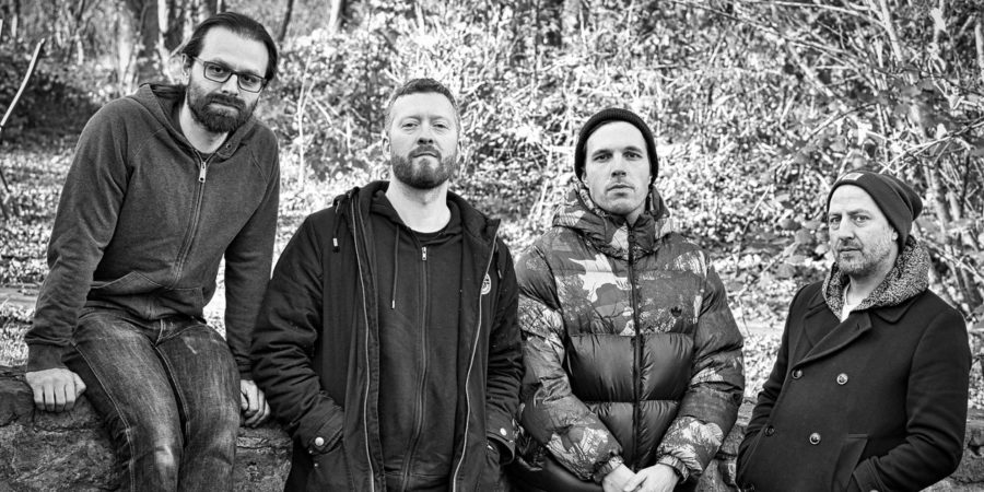 Long Distance Calling sind (v. l.): Jan Hoffmann (Bass), Janosch Rathmer (Drums), Florian Füntmann (Gitarre), David Jordan (Gitarre)