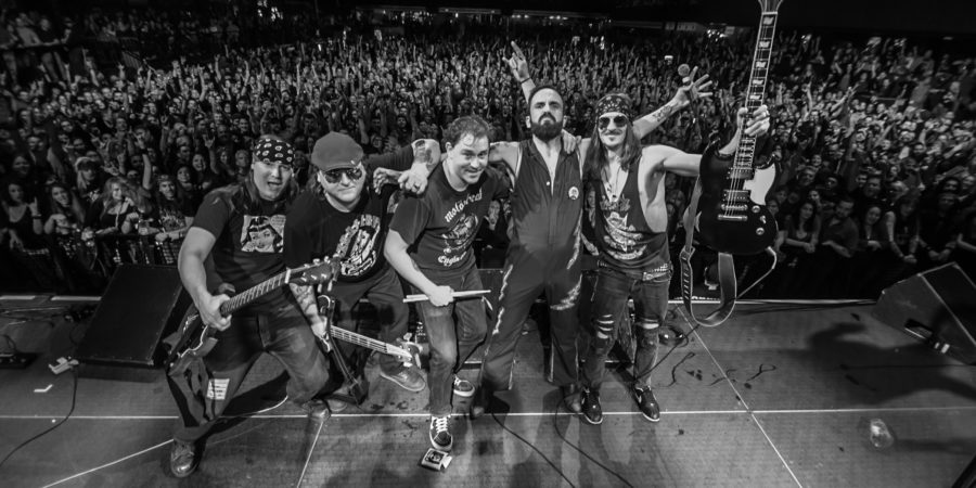 Die Lieferanten für Gewalt, Wut und Hass, die Angsthändler… sie sind wie das Drule Empire in Voltron und wir sind die Galaxy Alliance. Wir steuern einen gigantischen Superroboter, der aus IRON MAIDEN, THIN LIZZY, ZZ TOP, QUEEN, MURPHY’S LAW, AC/DC zusammengebaut ist… so in der Art. Wir sind die Verteidiger des Spaßes. Die Frontlinie der guten Zeiten, die verschworenen Feinde der schlechten Zeiten.