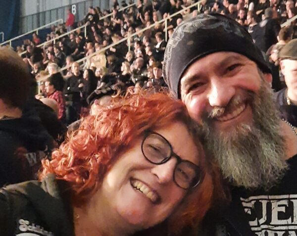 Während der erneuten Umbaupause erreicht uns dann die Nachricht, die alle angesichts der Berge leerer Einwegbecher überall schon befürchtet haben: der Met ist alle – und das noch vor dem Hauptact des Abends! Das sei auch beim zehnjährigen Jubiläum im E-Werk so gewesen, erzählen uns Kirsten und René, die mit Maskottchen Ingo, einer Plüschtaube mit eigener Insta-Seite, hier ein eigenes kleines Jubiläum feiern. Mit FEUERSCHWANZ verbinden die beiden eine Menge schöner privater Erinnerungen, hat doch René seiner Kirsten auf dem Feuertanz-Festival 2019 auf der Bühne beim Auftritt der Band einen Heiratsantrag gemacht.