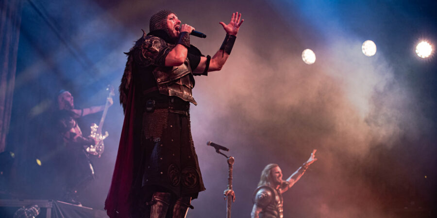 Pünktlich um 21:00 Uhr ist es dann endlich soweit: die selbsternannten “Metvernichter“ entern die Bühne und legen direkt mit einem Dreierblock aus “SGFRD Dragonslayer“, “Memento Mori“ und “Untot Im Drachenboot“ los. Die inzwischen gut gefüllte Halle tobt, man spürt, die Laune ist gut und der Met war es auch. Diesen Umstand lobt der Hauptmann dann auch direkt bei seiner Willkommensansprache nach “Metfest“: “Ich habe gehört, es ist kein Met mehr im Haus – fein gemacht!“. Subtil leitet er dann über zu den ersten Gästen des Abends. Fabienne Erni von ILLUMISHADE gesellt sich zu “Bastard Von Asgard“ zur Band. Dicht gefolgt von Gavin Dunne, besser bekannt als MIRACLE OF SOUND, der mit Hodi und Hauptmann eine epische Version von “Valhalla Calling“ zum Besten gibt, bei der sogar Schnee von der Bühne rieselt.
