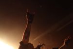 Aber ähnlich wie schon bei den beiden vorherigen Bands auf der Bühne ist es deutlich zu hell. Dazu versetzt die Lautstärke der Stimmung einen Dämpfer. Nein, nicht zu laut! Doch bereits bei AS I LAY DYING ist es leiser geworden, bei AMON AMARTH hört man jetzt die Unterhaltungen der Steh-Nachbarn deutlich gegen die Hintergrundbeschallung der Live-Band. Nichtsdestrotz sind die Schweden eine exzellente Live-Truppe. Beinahe in der ganzen Reihe kreisen die Köpfe zu dem stampfenden Rhythmus des Death Metal. Die Wikinger um den sympathischen Front-Hünen Johan Hegg warten dann auch mit einer exzellenten Setlist auf. Songs wie “Destroyer Of The Universe”, “For Victory Or Death”, “Death In Fire” oder der finale Höhepunkt “Twilight Of The Thundergod” versehen die Gesichter der Anwesenden mit purer Verzückung. Highlight des Abends sind aber Heggs Deutschkünste, als er geschlagene drei Minuten ohne großen Stolperer mit dem Publikum kommuniziert – fein.