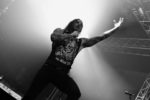 Mit „Runes To My Memory“ vom 2006 veröffentlichten Silberling „With Oden On Our Side“ bringen die Wikinger zu Beginn etwas Abwechslung in ihr Set. Wer jedoch bereits auf dem ersten Teil der „Surtur Rising“-Tour war, dürfte bei dem Ohrwurm „Destroyer Of The Universe“ ein Déjà-vu Erlebnis haben. Denn mit der gleichen Mimik und denselben Worten präsentiert Johan Surtur, der groß auf dem gewaltigen Backdrop prangt. Spaß macht die Show trotz der Parallelen, die wohl eh nur dem aufmerksamen Fan auffallen, der auch in der Tat bereits das zweite Mal in diesem Jahr die Tour von AMON AMARTH besucht. Aber gerade die grandiosen Klassiker wie „Pursuit Of Vikings“ lassen so oder so jeden Makel vergessen und bringen stattdessen die gesamte Halle zum Beben. Nun scheint kaum noch ein Kopf stillzuhalten und niemand scheint den Text nicht zu kennen. Bis auf die hinterste Empore, die äußerst selten für Fans geöffnet ist, kann man beobachten, wie voller Innbrunst mitgesungen wird. Zwar könnte die Allgemeinheit sicherlich gut auf die stetig nervigen Mitsing-Spielchen verzichten, aber sei’s drum. Die Band hat Spaß daran und die Fans machen fleißig mit, womit das Ziel ja erreicht wäre.