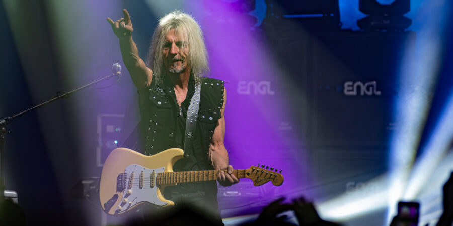 Mit „Forever Strong“, dem Opener des aktuellen Outputs kommt die Band um den weißblonden Gitarristen auf die Bühne. Danach folgt mit „Wildest Dreams“ von „Knights Call“ eine kleine Überraschung, das Stück hätten wir nicht erwartet. Auch „Don’t Say Goodbye“, das seinerzeit auf „The Ballads III“ erschien, zählt zu den unbekannteren Liedern.