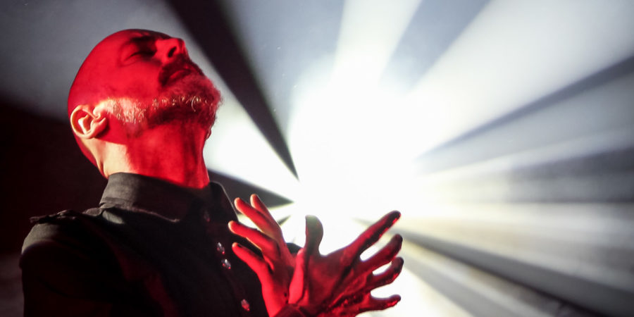 Jetzt aber: NIGHTFALL im kleinen Saal, und da zeigt sich, dass ein wenig Theatralik und ein mehr als solides musikalisches Fundament eine starke Verbindung eingehen. Sänger Efthimis Karadimas trägt eine nietenbesetzte Leder-Halbmaske im Gesicht, verdeckt sein Haupt ansonsten unter einer Kapuze und hat sein Mikrofon um eine Messerklinge aus Pappe und Silberfolie erweitert, mit der er bedrohlich umherfuchtelt.