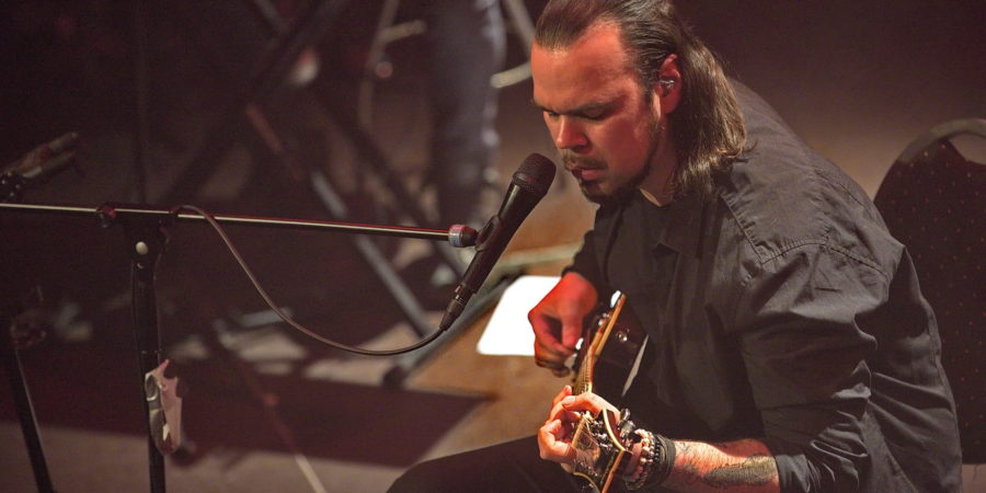 Anschließend folgte das perfekte Kontrastprogramm zu den rockigen ALVENRAD. Die Post-Rocker LES DISCRETS spielten ein exklusives Akustikkonzert. Bandkopf Fursy Teyssier an der Akustikgitarre wurde von einem weiteren Gitarristen unterstützt. Die ohnehin sehr stark im SHOEGAZE verwurzelten Franzosen erreichten durch die akustische Version den maximalen Grad und der Entspannung und Melancholie. Die verträumte Atmosphäre von LES DISCRETS zeigte sich sehr stark, obwohl das neue Album „Prédateurs“ durchaus in eine andere Richtung tendiert. Ich persönlich hätte mir für den Abend noch eine rhythmische Begleitung (Drums, Cajon, o.ä.) gewünscht, aber das mag Geschmackssache sein. Klar wurde jedenfalls, dass wie Fursy Teyssier anmerkte, alle Songs der Band ursprünglich auf der akustischen Gitarre geschrieben wurden und mithin zu ihrer ursprünglichen Form zurückgeführt wurden. Die Umsetzung in Oberhausen war daher naheliegend und stringent.