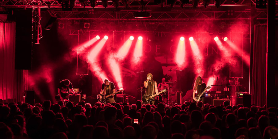 Das deutsche Doom-Vorzeige-Schlachtschiff MIRROR OF DECEPTION hat eine kleine, aber feine Setlist mit uralten und neuen Songs für heute Abend. Der Sound stimmt, die Band ist gut aufgelegt, was natürlich nicht bedeutet, dass die Musiker auf der Bühne rumalbern. Sie wiegen sich langsam, lassen die Instrumente sprechen und laden zum Tauchen in dunkle Gefilde ein. Die alte Perle „The Ship Of Fools“ lehrt uns: Doomiger geht nimmer, das ist die Essenz dieses Genres. Die Gitarrenmelodien kommen fast so sauber wie vom Tonträger, vielen Dank an die Band und die Soundchrew, das ist einfach Genuss pur – Doom ist nicht altmodisch und langweilig, sondern zeitgemäß und intensiv. Und Live muss sein, endlich wieder. Fans und Band genießen gemeinsam und emotional nach der langen Auszeit. Am schönsten ist immer wieder das großartige epische „Sojourner“ und mit „Asunder“ bringen MIRROR OF DECEPTION auch einen brandneuen Song in bewährter Qualität mit, da kann man gespannt sein auf das nächste Album.