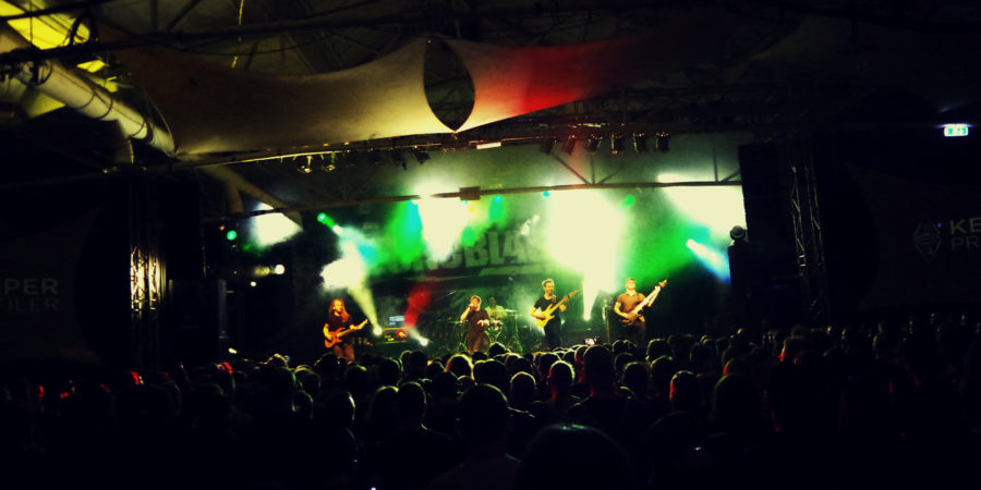 Und hoppla! Das ist ja richtig gut, was der Fünfer aus Wiesbaden da zusammenbringt! Geboten wird wuchtige, progressive Kost mit diversen technischen Spielereien, die trotz der noch frühen Stunde bei den bereits zahlreich anwesenden Zuhörern trefflich ankommt. Tatsächlich kann sich Kollege Kostudis nicht daran erinnern, beim Opener schon einmal derart viele Menschen vor der Bühne erlebt zu haben. Die gute Resonanz zum Auftakt dürfte nicht zuletzt auch Balsam auf die Seele der Organisatoren sein, die sich in den vergangenen Jahren sicherlich ein paar mehr zahlende Besucher gewünscht hätten. Diesmal, so jedenfalls der erste Eindruck, scheint alles im Lot zu sein. Eher als unnötig empfindet Kollege Kostudis das etwas hölzerne Bemühen der Wiesbadener, beim letzten Song eine Wall Of Death zu inszenieren. Zehn, zwölf wackere Menschen lassen sich animieren – das Ganze verkommt dann aber eher zur Lachnummer. Aber hey, auf dem Euroblast können die Pferde halt schon einmal mit den Musikern durchgehen. Trotzdem ein gelungener und überzeugender Auftakt.