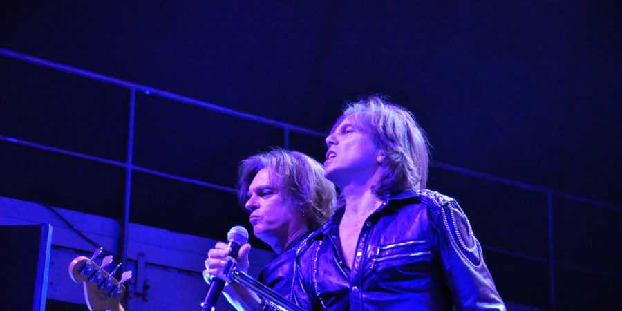 Anschließend verdichtet sich die Menge im E-Werk immer weiter. Denn viele Zuschauer erscheinen erst zum Hauptact. Ausverkauft ist die Halle allerdings noch lange nicht. Trotzdem gibt es stürmischen Applaus, als die Videoleinwände „The Ultimate Concert“ ankündigen. Das klingt nach Größenwahn. Doch EUROPE beweisen mit ihrem Set, dass sie auch nach über 30 Jahren immer noch eine Weltklasse Live-Band sind. Die erste Hälfte des Konzerts bildet das aktuelle Album „War Of Kings“. Bei den Publikumsreaktionen wirkt es aber eher so, als haue die Band bereits einen Klassiker nach dem anderen raus. Kein Wunder, zeigt sich Sänger Joey Tempest durchgehend von seiner Schokoladenseite. Der charismatische Frontmann hat die Meute von der ersten Sekunde an in der Hand. Jeder einzelne Ton sitzt. Jede Ansage führt zu noch mehr Applaus. Der zweite große Showman ist John Norum. Seine Gitarrensoli bestechen nicht nur durch phänomenales technisches Können, sondern auch durch viel Gefühl und stilsichere Melodieführung.