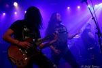 “Ellylldan” ist als Intro ebenso perfekt gewählt wie der Ohrwurm “Blackthorn” als Opener. Die Briten sind auf der Bühne ganz in ihrem Element, und vor allem Sänger Josh Winnard intoniert die Songs wie ein junger Gott. Hier hört man keinen Wackler, alle Töne werden wie auf Platte getroffen. Das ist ganz, ganz großer (Metal) Sport, der dem Publikum hier geboten wird. Das honoriert das Auditorium natürlich entsprechend. Nicht ganz so frenetisch wie noch bei den Mexikanern vor ihnen, aber doch lautstark genug. Dazu passt, dass auch die Gitarristen Patrick Jenkins und Christian Horton ihr Handwerk optimal beherrschen und sich die Bälle routiniert zuspielen. Größter Pluspunkt sind aber die großen Melodien, die DARK FOREST in Songs wie dem göttlichen “Sons Of England” oder “When Arrows Fall” gepackt haben. Und dennoch haben DARK FOREST auch mit einem langsam müde werdenden Publikum zu kämpfen. Nach vier Bands ist die Aufmerksamkeitsspanne bei manchem Besucher des GERMAN SWORDBROTHERS FESTIVAL längst nicht mehr so hoch, wie noch bei den vorherigen Bands. Trotzdem spielen die Briten einen saustarken Gig, und sind, wie angemerkt, mein persönliches Highlight an diesem Abend.