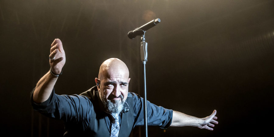 Kurz danach geht es mit „Eiszeit“ weiter. Die Künstler haben sich während der Unterbrechung passend zu dem Song umgezogen und so stehen diese jetzt in Winterjacken und mit Eispickeln bewaffnet auf der Bühne. So gut vorbereitet fehlt natürlich nur eins: Schnee. Wie konnte es auch anders sein, dass genau dieser während des Songs langsam von der Decke rieselte. Besser untermalen kann man einen Song einfach nicht. Anschließend geht Alexx bei „1000 Narben“ mit dem Publikum auf Tuchfühlung und drückt vereinzelt Leuten das Mikrofon in die Hand, um das Lied weiter singen zu lassen. Dabei werden die Sänger vom gesamten restlichen Publikum tatkräftig unterstützt. Bevor die Band zu dem vorerst letzten Lied des Abends kommt, spielt Alexx noch ein kurzes Mundharmonika-Solo. Dann heißt es „This is Deutsch“ und so verabschieden sich die Musiker von der Bühne, nur um kurze Zeit später unter großem Applaus wieder die Bühne zu betreten. Das belohnt die Band mit dem Song „Verrückt“, gefolgt von einem Drum- und Electronic-Solo. Anschließend heißt es nach „Miststück“ ein zweites Mal Abschied von EISBRECHER nehmen. Aber erneut nur kurz, denn den Abend abschließen soll der Song „In einem Boot“. Es werden noch einige Eisbären in die Menge geworfen und Alexx bedankt sich erneut bei allen Anwesenden, wünscht eine frohe Weihnacht und einen guten Rutsch in ein schönes 2018, bevor sich die Halle langsam leert.