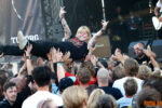 Soweit die Theorie. Die Praxis sieht etwas anders aus. Es kommt vor, dass eine Band auf der Hauptbühne etwas überzieht und die im Saal angesetzte Band sich als Zuschauermagnet erweist. Beispiele wären die Power-Metaller DRAGONFORCE oder auch JUNKYARD DRIVE. Die Hard-Rock-Band aus Roskilde hat in Dänemark eine ganz andere Popularität als in Deutschland. Die Fans stehen bereits lange vor dem Gig vor der Bühne, sodass für die Menschen, die die Band auf der Hauptbühne bis zum Ende verfolgen, kaum ein Durchkommen ist.