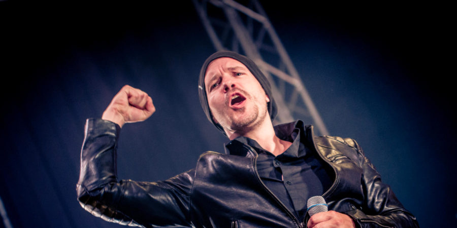 Den musikalischen Anfang des ereignisreichen Abends bilden die Musikerinnen und Musiker der DRESDEN PIPES&DRUMS, die ich um ein Haar verpasst hätte, aufgrund sehr auskunftsfreudiger Herren aus St. Pauli, die später am Abend ihr aktuelles Album “Thornstar“ präsentieren werden: Die Niederschrift des Gespräches mit LORD OF THE LOST ist demnächst hier auf metal.de nachzulesen. Nichtsdestotrotz kann ich mich rechtzeitig am Klang der durch die Menge marschierenden Dudelsackspielern und Trommlern erfreuen. Nach diesem durchaus beeindruckenden Start betritt Benni Cellini die Bühne und bedankt sich nicht nur bei allen für diesen Abend Verantwortlichen, sondern kündigt die erste Band des Abends derart an, dass diese Herren zu den längsten Wegbegleitern von LETZTE INSTANZ zählen und der Sänger wohl eine gewisse Anziehungskraft bezüglich des weiblichen Geschlechts verströme.