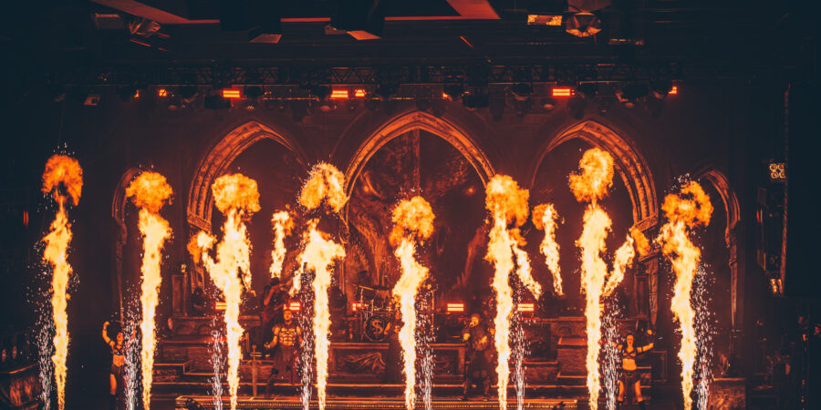 Mit dem Doppelschlag „SGFRD Dragonslayer“ und „Memento Mori“ startet die Band ins Set und reißt die Swiss Life Hall sofort mit. Der Fokus liegt auf den Alben ab 2020, wobei nicht nur die neue Scheibe „Knightclub“ im Mittelpunkt steht. Natürlich gibt es den Titeltrack ebenso wie die Singles „Sam The Brave“ und „Valhalla“ – letzteres heute mit Melissa Bonny am Mikrofon statt DORO.