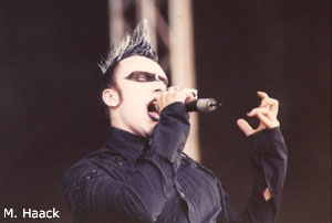 Die drei Schweden von Colony 5 hatten die ungeliebte Aufgabe, als erste Band um 11.20 Uhr im Hangar zu spielen. Eigentlich überraschend, waren sie doch zuletzt mit ihrem Video auf Onyx zu sehen und dort auch eine Stunde bei „Startalk“ vertreten. Die Jungs machten das beste draus und das war eine Menge. Zudem hatten für diese Uhrzeit ungewöhnlich viele Leute den Weg zum Hangar gefunden – mehr als bei einigen folgenden Bands. Die Schweden fanden schnell einen Draht zum Publikum und waren ein wenig überrascht, dass ein Großteil der Leute bei den Songs wirklich abging. Kein Wunder eigentlich, denn bei Tracks wie „Hate“, der Club-Single „Black“ oder „Synchroniszed Hearts“ von der neuen Platte „Structures“ kann man einfach nicht stillstehen. Aber auch Songs des Debüts „Lifeline“ kamen nicht zu kurz. Besser konnte man seinen Kreislauf nicht in Schwung bringen. Noch etwas Gutes hatte der frühe Auftritt: Die Luft im Hangar war sogar vorne vor der Bühne noch erträglich. (mh)