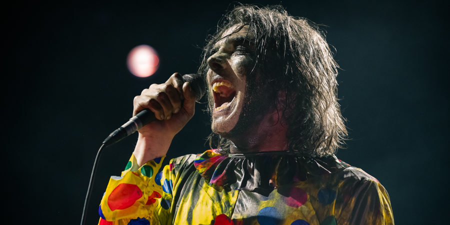 Nach der obligatorischen Umbauphase gehen im Velodrom erneut alle Lichter aus und düster-atmosphärische Gitarrenklänge tönen von der Bühne her. Die allerdings unter dem lauten Jubel der Masse untergehen. Es dauert eine Weile, bis man erkennt, dass MY CHEMICAL ROMANCE ihr Set mit der neuen Single „The Foundations of Decay“ einleiten. Als die Band die Bühne betritt, kennen die Fans kein Halten mehr und es wird noch einmal eine Schippe lauter im Saal. Gerard Way (stilecht in einem gelben Clownskostüm) stimmt die erste Strophe an und schon schließt sich das Publikum fast geschlossen ein. Und das, obwohl die Single erst ein paar Wochen alt ist. Wer nach dem eher melancholischen Stück denkt, dass MY CHEMICAL ROMANCE nach fast zehn Jahren Pause ruhiger geworden sind, irrt. Ohne Umschweife und mit vollem Tempo geht es mit dem Krachern „Thank You for the Venom“, „Give ‚Em Hell, Kid“ und „Tomorrow’s Money“ weiter.