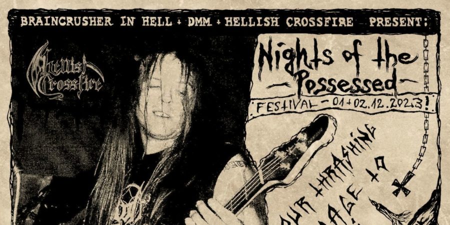 HELLISH CROSSFIRE sind eine im Jahr 2002 gegründete Thrash-Metal-Band aus dem Nürnberger Raum, deren Bassist und Gründungsmitglied Sigi eine Ikone und Gallionsfigur innerhalb der Szene. Um die Weihnachtszeit im letzten Jahr stirbt er. Letztlich soll dieses Wochenende, organisiert von den Veranstaltern des ehrwürdigen Braincrusher In Hell, mit Weggefährten und Gleichgesinnten an Sigi erinnern. Unter dem Banner des Songs „Nights Of The Possessed“ soll im Sinne der alten Zeiten sowie der Zukunft ein rauschendes Fest gefeiert werden. Es soll düster, es soll besessen werden. Und es soll ordentlich Alkohol fließen. Ja, es wird.