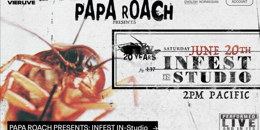 Am 25. April 2000 veröffentlichten PAPA ROACH ihr zweites Studioalbum „Infest“, das, der bis dahin als Geheimtipp gehandelten kalifornischen Band, den Durchbruch brachte. 20 Jahre ist das nun her. 20 Jahre, in denen die Band laut Jacoby Shaddix nicht stillstand, bis COVID-19 sie ausgebremst hat. PAPA ROACH lassen es sich dennoch nicht nehmen, dieses Jubiläum mit ihren Fans zu feiern und spielen am 20. Juni 2020 „Infest In-Studio“ als weltweiten Live-Stream auf Vierlive.
