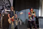 Bevor die beiden Headliner zur Tat schreiten, dürfen die MAD CADDIES mit ihrer Mischung aus Punk-, Ska-, Jazz- und Dixieland-Elementen das Amphitheater erfreuen. Das schaffen sie auch mit Leichtigkeit. Zwar ist Frontmann Chuck Robertson auch keine personifizierte Rampensau, der Musik der Caddies ist das aber nicht abträglich. Die hat meiner Meinung nach ihre besten Momente, wenn die Band Punk und Dixieland miteinander vermischt. Das klingt frisch und unverbraucht. Aber auch die anderen Stilkombinationen kommen beim Publikum sehr gut an. Ich schätze, dass das Amphitheater zur Hälfte ausverkauft ist. Mussten THE BRONX noch mit dem Auftritt der deutschen Nationalmannschaft konkurrieren, haben die MAD CADDIES heuer wesentlich leichteres Spiel. Das Publikum hat Lust auf Party und feiert die Kalifornier nach allen Regeln der Kunst ab. Gelungener Auftritt.