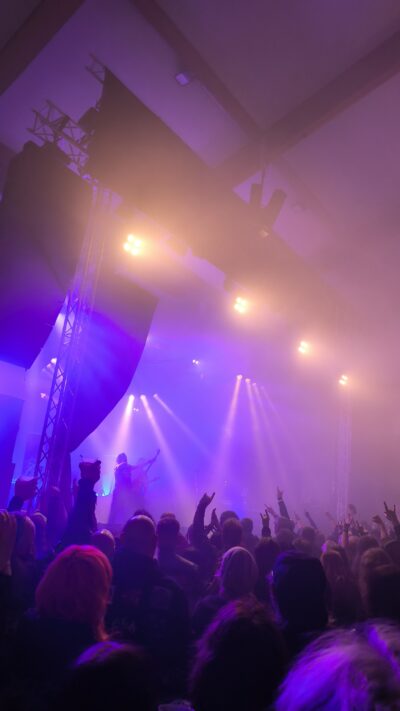 Eine essenzielle Frage tut sich sogleich auf: Wo ist das Landbier? Das gibt es tatsächlich nicht, was schade ist, weil die Leikeim-Abhängigkeit nach wie vor real ist. Egal, trotzdem ein Helles geholt, denn mit IOTUNN steht ein vermeintliches Highlight auf der Bühne. Die Lampe am Mikro ist ein cooles Gimmick, aber hier sticht wahrlich die Symbiose aus Musik und Stimmvielfalt heraus. Es war eine gute Idee, IN VAIN und IOTUNN im Billing zu benachbaren. Allerdings setzen die Dänen noch mal einen drauf und liefern auch abseits der Mikrofonbeleuchtung einen satten Lichtblick für das gesamte Festival. Hier benicken und feiern auch die optisch gestandenen Wikinger:innen den gefühlvollen Klargesang und die schönen Melodien.