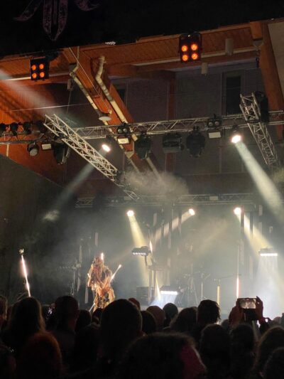 Schnell zurück: VREID verzaubern das Ragnarök mit epischem Extreme Metal, der oft erfreulich nah an WINDIR ist. Danach wird es speziell, aber im ganz positiven Sinne: EIHWAR ist ein französisches Duo, das uns mit ihrem „Viking War Trance“ komplett in seinen Bann zieht und vom Look bis zur Performance (ob elektronisch, akustisch oder gesanglich) mächtig Eindruck hinterlässt. Dazu zieht eine Polonaise durch die Reihen und Surfer:innen gleiten über die Crowd. Ein Festival-Höhepunkt!