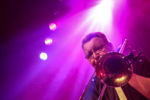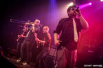 Es geht also stimmungsvoll zu im nicht ausverkauften, aber angenehm gefüllten Freizeitzentrum West (FZW) in der Westfalenmetropole. Das liegt nicht zuletzt am durchaus flotten Einheizen der Vorgruppe AWESOME SCAMPIS. Da darf man sich von dem unmöglichen Namen nicht täuschen lassen. Die Jungs aus Kamen sind gut! Und zahlreich: Sänger, Schlagzeuger, Bassist, Keyboarder, zwei Gitarristen und zwei Blechbläser machen nicht weniger als acht Bandmitglieder, die die Bühne mit Leben füllen. Ebenfalls mit dabei: Bei jedem Stück neue Kostüme und Accessoires. Das garantiert Kurzweil.