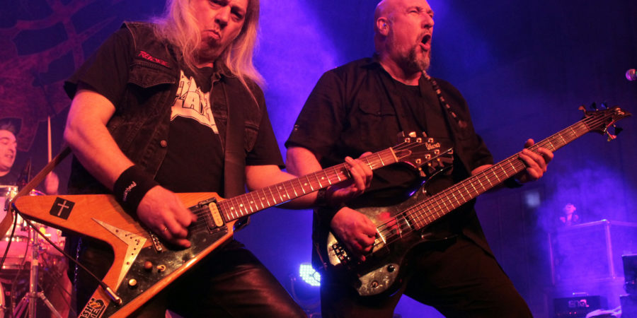 Danach werden die Musiker durchgemischt und Efti und Manni Schmidt stehen zusammen mit Peavy unter dem Banner REFUGE auf der Bühne. Gestartet wird die Zeitreise mit den beiden superb intonierten Krachern “Solitary Man” und “Enough Is Enough” vom “Trapped!”-Album. Logisch, dass das Publikum der Band aus der Hand frisst und REFUGE gebührend abfeiert. “Invisible Horizons” kommt zwar auch klasse daher, zeigt aber leider auch, dass Peavy sich eventuell einmal überlegen sollte, ob er die ganz hohen Tonlagen noch ausreichend bedienen kann. Der Stimmung tut dies jedoch keinen Abbruch. Eher im Gegenteil. Mit “Refuge”, “Don’t Fear The Winter” und dem unvermeidlichen “Higher Than The Sky“ als Schlusspunkt, legen die Bands (zu “Higher Than The Sky” kommen die aktuellen Musiker zurück auf die Bühne) noch einmal ein paar Briketts nach und werden völlig zu Recht frenetisch abgefeiert. Nach 45 Minuten ist dann Schluss und es geht zur Verschnaufpause an den Bierstand.