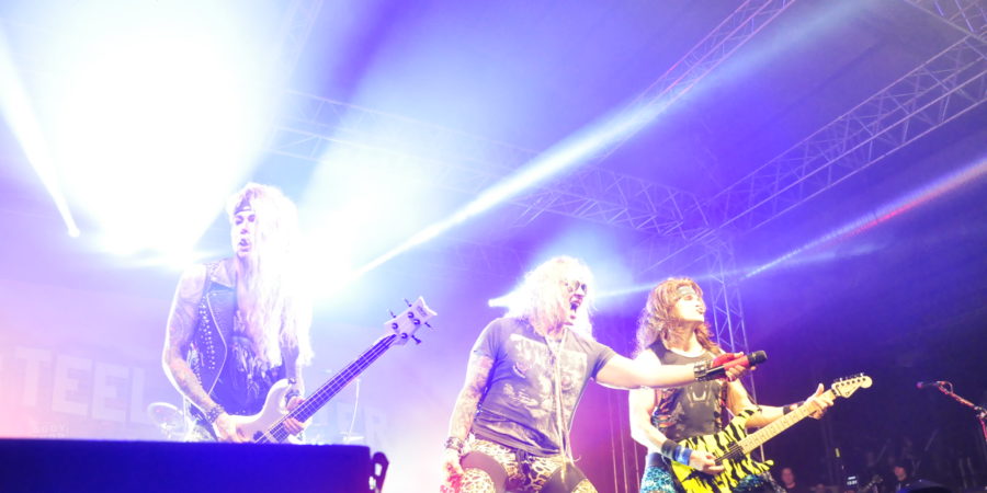Nach einer angenehm kurzen Umbaupause kündigt ein tief tönender Spreche die einzig wahre 80er-Legende an. STEEL PANTEHR entern die Bühne anschließend unter einem Jubelchor, der sich gewaschen hat. Mit „Eyes Of A Panther“ gibt es zum Einstieg einen Bandklassiker, dessen Text dem lauthalsen Mitgrölen zufolge alle kennen. „Goin‘ In The Backdoor“ kann das Niveau locker halten. Doch danach macht sich eine ganz schöne flaute breit.