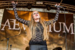 Was bei Konzertbeginn sofort auffiel: für eine noch recht junge Band hatten AEVERIUM überraschend viele Leute mobilisiert. Sobald die Band dann loslegte, wurde auch klar, wieso. Mit einer eingängigen Mischung aus verschiedenen Rock und Metal Genres, abgerundet durch einige Elektro-Elemente als Streusel obendrauf, hat die Truppe aus NRW ein smartes Konzept parat. Auch gesanglich gestalten sie ihr Programm abwechslungsreich und bedienen damit die Fans ganz unterschiedlicher Richtungen. Neben dem im Gothic Metal gängigen Soprangesang von Sängerin Aeva erinnern Sänger Marcels Vocals, abwechselnd clean und Shouts, eher an Metalcore. Auch einige Breakdowns finden sich in den Songs, was den Eindruck noch verstärkt. Wie sehr sie das Publikum mitzureißen vermögen, stellten die fünf dann unter Beweis, als für einen mit Amanda Somerville aufgenommenen Song schlicht die betreffende Dame fehlte. Die Menge war jedenfalls sofort bereit, den entsprechenden Gesangspart zu übernehmen. Zum Abschluss folgten dann noch zwei Tour-Ankündigungen, einmal mit Kamelot und einmal mit Lord Of The Lost. Die Fans werden also auch weiterhin bedient.