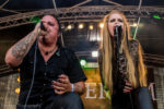 ALMANAC, das Allstar-Projekt um den ehemaligen RAGE-Gitarristen Victor Smolski, eröffnen den metallischen Teil des Festivals um 16 Uhr auf der T-Stage. Es herrscht ein angenehm erfrischendes Lüftchen und das Zelt ist bereits zur Hälfte gefüllt, als die Band mit dem Titeltrack ihres Debüts „Tsar“ ihr Set eröffnet. Sicher haben sich auch einige Zuschauer vor der knallenden Sonne in die T-Stage hinein geflüchtet, doch auch die konnten nicht lange die Beine still halten. Sofort herrscht Dynamik auf der Bühne, denn das dreiköpfige Sängergespann bestehend aus David Readman (PINK CREAM 69), Jeanette Marchewka und Andy B. Frank (BRAINSTORM) harmonieren nicht nur gesanglich wunderbar miteinander, sondern sorgen auch für reichlich Bewegung auf der Bühne. Sie animieren das Publikum zwar selten zum Mitmachen, dieses zeigt sich jedoch stets kooperativ und liefert gerne die nötige Stimmung, im Falle von „Nevermore“ und „No More Shadows“ sogar unaufgefordert. Und immer, wenn Smolski seine Gitarrenkünste zur Schau stellt, beispielsweise beim Gänsehaut-Solo von „No More Shadows“ oder dem furiosen Einstieg von „Hands Are Tied“, räumen die drei das Feld, um den Maestro im Fokus zaubern zu lassen. So spielen sich ALMANAC fast durch ihr gesamtes Debütalbum, überraschen zum Schluss aber dann sogar mit dem RAGE-Song „Empty Hollow“, der als Rausschmeißer fungiert. Insgesamt sorgte die Band für einen mehr als gelungenen Festivalauftakt.