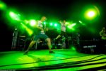 Die Gesetzlosen aus Heidelberg traten in adäquater Kleidung zu ihrer Show auf der Camel Stage an, die sie dann auch noch mit diversen Accessoires ausgeschmückt hatten. Cowboyhüte und -stiefel, Lederhosen und –mäntel sowie ein entsprechendes Backdrop waren ja zu erwarten. Aber der Mikroständer von Sänger Alex Kraft in Form eines Gewehrs, der Rinderschädel am Mikroständer des Bassisten, die Strickschlinge an der Gitarrenbox und auch die Hörner am übergeilen Sonnengelb-Metallicfarbenen Ludwig-Drumkit waren schon Hingucker. Los gings natürlich mit nem Mundharmonika-Intro a la Morricone, bevor sie ihren Gäulen dann die Sporen gaben und mit dem programmatischen „Wild Times“ losgaloppierten. Die Band kam vom Start weg gut an, gewann aber mit jedem ihrer vier Sets sogar noch mehr Publikum für sich. Smart beendeten sie jedes Segment mit einer Coverversion und sorgten u.a. mit einem Banjo-Einsatz für Abwechslung.