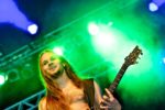Die „Newcomer“ von HELL veröffentlichten ihr Debüt ja erst 2011, die Band existiert aber bereits seit Anfang der 80er! Hier schwang sich also mächtig motiviert eine wahre Kultband auf die Bühne, der man ihr Alter einerseits zwar ansah aber andererseits nicht anmerkte, so engagiert und bewegungsfreudig wie die Briten ans Werk gingen. Klarer Chef im Ring war ihr Sänger, der allein durch seinen silbernen Lorbeerkranz im Haar und sein Bügelmikro auffiel, vor allem aber mit seiner extrovertierten Art und hohem Gestikfaktor punktete – kein Wunder, der Mann kommt vom Musical. Das zahlreich anwesende Publikum geriet nicht gerade in Extase, klatschte aber immer wieder gerne mit und die ersten Reihen zeigten sich sogar recht textsicher. Die Band spielte perfekt zusammen, zwischen den Songs wurde mittels Keyboard-Flächen die Stimmung gehalten und der Sänger sorgte zusätzlich durch den ein oder anderen Kostümwechsel für Abwechslung. Für viele unbemerkt stand da eine regelrechte Metal-Legende auf der Bühne, eine der Gitarren wurden nämlich von Andy Sneap bedient. Der hat über die letzten Jahre alles, was Rang und Namen im Business hat, in seinem Studio produziert oder deren Alben gemischt – Hut ab!