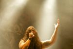Trotz verschiedenster gegenteiliger Ansagen blieb es an diesem Abend trocken und der Platz füllte sich nach dem grandiosen Gig von BOLT THROWER bis weit nach hinten. AMORPHIS sind live stets ein Garant für technisch und musikalisch perfekt ausgefeilte Shows und so weiß man inzwischen einfach, was man an ihnen hat. Die Finnen erwischten einen hervorragenden Start und hatten beim willigen Publikum leichtes Spiel. Musikalisch luden sie zu einer Reise quer durch ihren umfangreichen Backkatalog und fanden damit schnell Anhänger aus allen Schaffensphasen, wobei der Schwerpunkt auf dem aktuell gefeierten Longplayer „The Beginning of Times“ lag. Trotzdem blieb der Eindruck, dass die Fans mehr Gefallen an den alten Songs fanden. Dies tat der Show allerdings keinen Abbruch. Dafür verstand der charismatische Fronter Tomi Joutsen an diesem Abend sein Handwerk als Entertainer viel zu gut, als dass die Stimmung hätte kippen können. Es war eine Pracht, wie Joutsen seine Dreadsmähne wirbeln ließ und so im Gegenlicht skurrile Bilder zeichnete. Einzig seine Mitstreiter wirkten zuweilen sehr zurückhaltend und blieben sich arg im Hintergrund. Das mittlerweile oft fehlende „Black Winter Day“ hätte dem ohnehin grandiosen Auftritt wohl vollends die Krönung verpasst, wurde aber leider nicht gespielt. Nichtsdestotrotz gab es mit „House Of Sleep“ einen krachenden Rausschmeißer, der der ohnehin schon schwer geforderten Graben-Security nochmals alles abverlangte. AMORPHIS bewiesen mit diesem Auftritt wieder einmal ihr Stärke, allen voran ein stimmlich in allen Lagen überzeugender Tomi Joutsen.