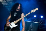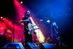 Nach den Metalcorelern von EVERGREEN TERRACE wurde es wieder finster im Partyzelt – und das lag nur zum Teil an der fortgeschrittenen Stunde, sondern vor allem an der Bühnenpräsenz MARDUKs, die ihre gesamte Routine ausspielten und ihr Publikum von der ersten Sekunde an fesselten. Die Auswahl der Songs erstreckte sich vom 1998er Knaller „Nightwing“ über „Panzerdivision Marduk“ bis hin zum aktuellen Album „Serpent Sermon“, dessen Vertreter „Temple Of Decay“ den Vierer in ungewohnt getragener Manier zeigt, dabei aber nichts von der rohen Gewalt einbüßt, die dem schwedisch-schwarzen Schwermetall von Håkansson & Co. innewohnt. War „Temple Of Decay“ vergleichsweise gedrosselt, schienen MARDUK diese „Verzögerung“ direkt aufholen zu wollen und schoben mit „Christraping Black Metal“ einen durchgängig in Blastbeats gehaltenen Song hinterher. Dabei demonstrierte Sänger Mortuus in seiner Interaktion mit den Zuschauern einmal mehr, dass er mittlerweile zur echten Frontsau gereift ist. MARDUK scheinen dabei nicht nur gegen den Zahn der Zeit immun zu sein – wie „Serpent Sermon“ eindrucksvoll beweist -, auch Widrigkeiten auf der Bühne machen der Band offenbar keinerlei Schwierigkeiten: Sei das die streikende Gitarre Morgans oder ein übereifriger Fan, der gegen Ende des Gigs die Bühne stürmte und sein Hinterteil entblößte; als er das ein weiteres Mal versuchte, machte er unsanfte Bekanntschaft mit einer elanvoll geschwungenen Gitarre. MARDUK demonstrierten in den 55 Minuten einmal mehr, welche Macht sie live sind, und hinterließen ein feierndes Publikum, das wohl zu Recht eine Zugabe forderte.