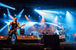 CHROME DIVISION haben mit vier Studioalben und (ex-)Mitgliedern von DIMMU BORGIR, BORKNAGAR, OLD MAN’S CHILD und SUSPERIA einiges auf dem Kerbholz, um die T-Stage zur besten Partyzeit ausreichend zu füllen. Kein Wunder also, dass schon die ersten Takte von „Breath Easy“ ziemlich abgefeiert wurden – was wohl auch nicht zuletzt vom Funkenregen rührt, den Fronter Shady Blue gleich zu Anfang entfacht. CHROME DIVISION pflegen ihr ruppiges Bikerimage gekonnt: in Lederkluft gehüllt, sonnenbebrillt und Zigarillo paffend, trieft die leicht gestelzte Coolness von den Norwegern wie Motoröl aus einem Feuerstuhl. Keiner, aber auch wirklich keiner der Musiker verzieht während des Gigs eine Miene, gebangt wird woanders. Um es nicht ganz nach abgebrühter Langeweile aussehen zu lassen wird geposed, was das Zeug hält, was sich nicht zum Nachteil auswirkte. Die Fans zeigten sich sehr textsicher und sind mit „Raven Black Cadillac“, spätestens aber ab „Endless Nights“ auf der Seite der Band. Was bestimmt auch an einem Sound lag, der die Songs wirkungsvoll abbildete. Trocken und rotzig servierten CHROME DIVISION ihre traditionellen Heavy-Nummern, die Leads bluesig, die Drums treibend, das Volk zufrieden. Eine sehr willkommene Entspannung zwischen zwei Death-Attacken auf der T-Stage.