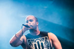 Den letzten Tag durften mit UNDERTOW ein paar alte Bekannte eröffnen. Nach heftigen Schauern am Morgen ließ es sich die Sonne pünktlich zum Showbeginn nicht nehmen, in die musikalisch eher düstere Doomcore-Show hineinzuschnuppern. Die Besucher hingegen wagten sich nur langsam aus ihren Zelten, doch im Laufe des Gigs gelang es den Schwaben, immer mehr Leute vor die Pain Stage zu locken. Dort bekamen sie eine gewohnt engagierte Show zu sehen, die vor allem Stücke der letzten beiden Studioalben beinhaltete. Dabei hatten UNDERTOW seit der Hinzunahme eines zweiten Gitarristen Ende 2012 merklich an Durchschlagkraft gewonnen und ihren ohnehin schon fetten Sound um eine zusätzliche Dimension bereichert. Beim dritten Lied tauchten dann plötzlich technische Probleme auf, die dazu führten, dass Frontmann Joschi einen neuen Verstärker verpasst bekam. Nach entsprechenden Aufforderungen des Publikums überbrückten Drummer Oliver Rieger und Joschis Gitarren-Kollege Markus Brand die entstehende Pause mit einer kurzen Solo-Einlage. Von diesen Widrigkeiten ließen sich die Musiker aber nicht beirren und setzten ihr Programm nur umso engagierter fort. Gegen Ende wurde der sonst mit seinen launigen Ansagen in breitem Schwäbisch für Stimmung sorgende Joschi plötzlich ernst, als er verkündete, dass man das folgende „Canvas Ghosts“ dem im letzten Jahr verstorbenen SUMMER BREEZE-Mitveranstalter Michael „T“ Trengert widmen wolle. Da konnte dann auch der Himmel nicht mehr an sich halten und ließ einige dicke Regentropfen auf das Festivalgelände herabfallen. Rest in peace, T!