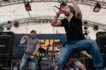 Mit 20-minütiger Verspätung eröffneten IWRESTLEDABEARONCE mit dem „The Final Countdown“-Theme die Spiele auf der Mainstage am letzten Festivaltag. Trotz der frühen Uhrzeit hatte sich eine große Schar Zuschauer vor der Bühne versammelt, um Courtney und Konsorten zu bejubeln. Was danach folgte, war das bandtypische kontrollierte Chaos mit exzessiven Breakdowns, elektronischen Passagen, brachialen Riffs, wüsten Deathcore-Parts und chaotisch platzierten melodischen Stilmitteln, die die Menge zum Toben brachten – hier kann man mit Fug und Recht von einer musikalischen Achterbahnfahrt sprechen. Die Setlist der sympathischen und trotz der lästigen Verzögerung gut aufgelegten Besatzung war dann folgerichtig nur knapp 30 Minuten lang und dank kurzweiliger Songs wie „Tastes Like Kevin Bacon“, 2Boat Paddle“ und „Firebees“ erschien die ohnehin knappe Spielzeit sogar noch kürzer, aber IWRESTLEDABEARONCE haben ihr Bestes gegeben, um die Fans trotzdem hinreichend zu begeistern und waren ein einzigartiges Erlebnis!