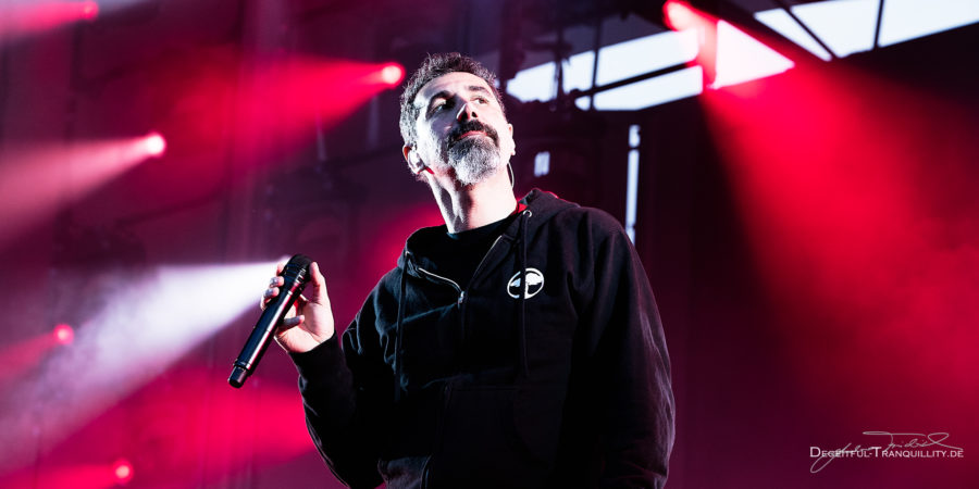 Ein SYSTEM OF A DOWN Song ist durchschnittlich drei Minuten lang, etwas kürzer in den ersten drei und etwas länger in den letzten zwei Alben, lässt man das unveröffentlichte „Storaged Melodies“ einmal außer acht. Auf fünf Alben finden sich gut 200 Minuten Musik und da die Band um zwanzig nach acht beginnt, haben sie 100 Minuten Zeit. Wir kommen daher in den Genuss die (bessere) Hälfte aller Songs der Band zu hören. Kaum Ansagen oder größerer Kontakt mit dem Publikum bis auf vereinzelte Animation. Auf den Fotos ist der Band anzusehen, dass sie großen Spaß am Auftritt hat. Vor allem Serj Tankian strahlt geradezu. Die Band liefert, wozu wir alle hier sind: Ihre Musik. Im Gegensatz zu manch anderen wird sich nicht über Gebühr auf der Bühne in Szene gesetzt. Ein wenig Variation gönnt sich Daron Malakian, indem er „Psycho“ ein paar Takte des Olivia Jones Songs „Physical“ voranschickt. Den hat sich dieser Redakteur aus Recherchegründen dann nochmal anhören müssen. Danke Daron.