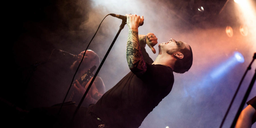 Doch erstmal heißt es warten, denn obwohl die Einlasszeit ganz offiziell „20 Uhr“ lautet, war nachmittags noch auf verschiedenen Seiten im Netz „19 Uhr“ zu lesen. Dann jedoch geht es relativ fix los, und um 20 nach acht betreten die Delmenhorster Melodic Death/Black Metaller CTULU die Bühne – obwohl sich vor der Bühne erst zwei knappe Handvoll Leute versammelt haben. Den Musikern scheints egal zu sein, gekleidet in Kapuzen und an „Watchmen“-Rohrschach erinnernde Masken stehen die Herren heute nur zu dritt auf der Bühne im Nuke Club und präsentieren Stücke ihrer bisher vier Alben in sehr klarem Soundgewand. Die Band tritt heute zwar ohne Bassist auf, und in der Tat fehlt der Bass ein wenig im Sound – aber dennoch klingt das sehr differenziert, was da aus den Boxen auf die Anwesenden herniederschallt.