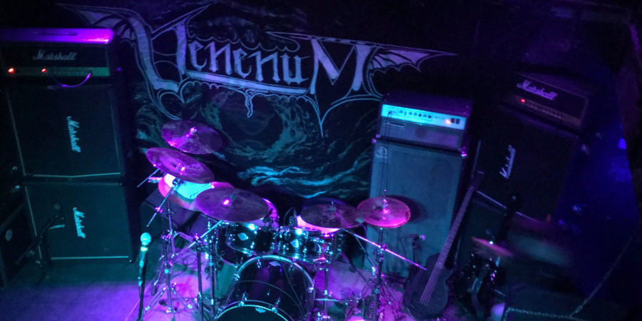 VENENUM live – das allein sollte einige Interessierte ziehen. Wer genauer hinschaut, freut sich auf einen insgesamt spannenden Genre-Mix im Berliner Kastanienkeller! Nur der Weg dahin ist gar nicht so einfach. Und so sieht man ein paar verwirrte Gesichter vor der an sich passenden Hausnummer. Geheimtipp: Du musst durch die Bar, die einen ganz anderen Namen trägt, um im hinteren Bereich in den Kastanienkeller abzusteigen. Der entpuppt sich wiederum als kleine, aber feine Location, die den Besuchern den obligatorischen Platz vor der Bühne, aber auch eine Balustrade bietet, um das Geschehen von oben zu begutachten. Dann kann es ja losgehen: mit Thrash, Heavy-Black- und Death Metal!